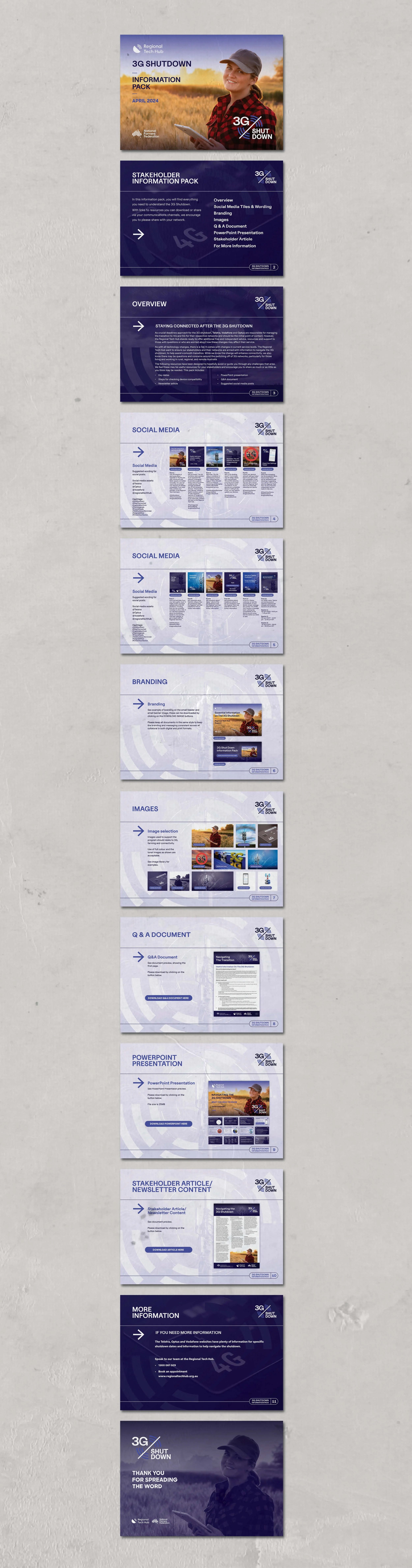 As Australia’s 3G networks were approaching shutdown, the Regional Tech Hub offered free, independent advice and resources to support rural, regional, and remote communities during the transition to 4G and 5G. I developed a comprehensive stakeholder information pack to ensure users were informed, prepared, and able to navigate the change with confidence.